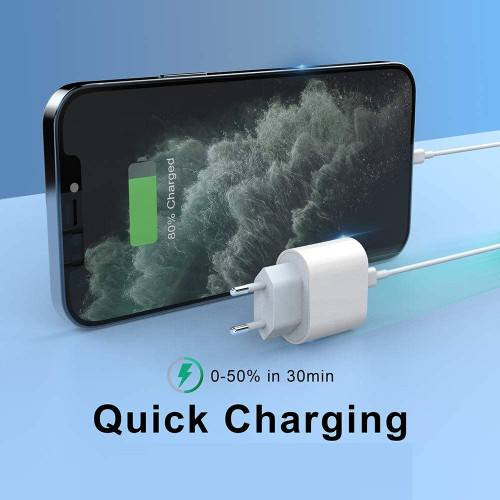 В комплект быстрой зарядки который мы предлагаем, входит зарядный кабель USB-C to Lightning и адаптер Power Adapter USB-C 18W который работает от сети 220В.