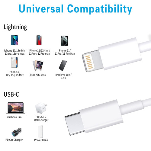 Кроме того, этот кабель можно использовать для зарядки устройств iOS с помощью адаптера питания Apple USB‑C мощностью 18 Вт, 20 Вт, 29 Вт, 30 Вт, 61 Вт, 87 Вт или 96 Вт, а также для быстрой подзарядки некоторых моделей iPhone и iPad.