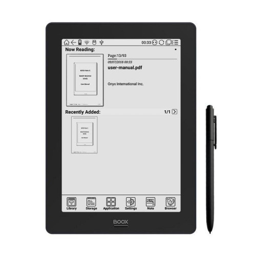 ONYX BOOX Note Pro — устройство с экраном 10,3 дюйма с повышенным разрешением E Ink Mobius Carta, поддерживающим функцию SNOW Field. Ридер станет идеальным выбором для тех, кому приходится часто читать учебную или техническую литературу, для музыкантов и студентов. Большой и комфортный для глаз дисплей, мощный процессор в сочетании с 4 ГБ оперативной памяти и двойное сенсорное управление — оптимальные инструменты для чтения файлов в форматах PDF и DjVu. Встроенный модуль Wi-Fi позволяет выходить в Интернет и подключаться к сетевым библиотекам, а возможность устанавливать приложения для Android существенно расширяет его функциональность.