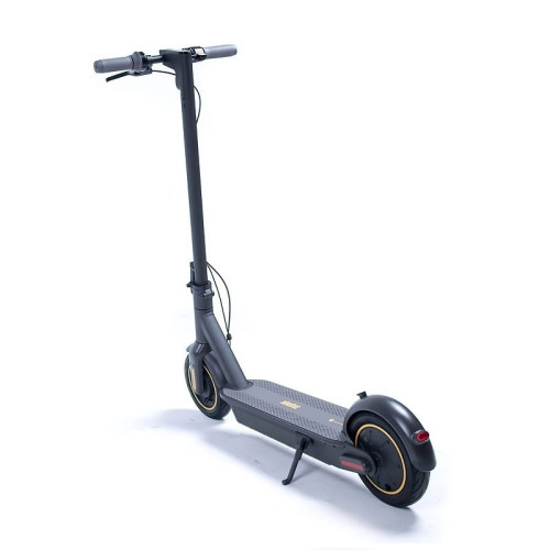Складной электросамокат Ninebot by Segway MAX G30 (40.30.0000.00) отлично зарекомендовал себя как на ровном асфальтированном покрытии, плитке и парковым аллеям, так и на грунтовке. Крепкая конструкция, надежные тормоза и продуманное исполнение гарантируют контроль над транспортом и не один год пользования. Электросамокат оснащен качественным мотором, мощностью 350 Вт, что позволяет на нем разгоняться до максимальной скорости 30 км/ч. Батарея Li-Ion с напряжением 36 В позволяет ездоку проезжать до 65 км в зависимости от скорости и стиля езды. Благодаря двум резиновым колесам, диаметром 25,4 см, и широкой антискользящей деке, можно максимально комфортно преодолевать дальние расстояния даже на плохих дорогах, кочках и ямках. Ninebot by Segway MAX G30 (40.30.0000.00) комплектуется стояночной подножкой, а для безопасного передвижения в темное время имеется подсветка. Помимо этого, транспорт оборудован дисплеем, на котором отображается текущая информация о скорости, дальности пробега и уровня оставшегося заряда. Также электросамокат можно синхронизировать со смартфоном через Bluetooth, что позволяет анализировать поездки и дает возможность блокировки самоката, чтобы устройство не угнали