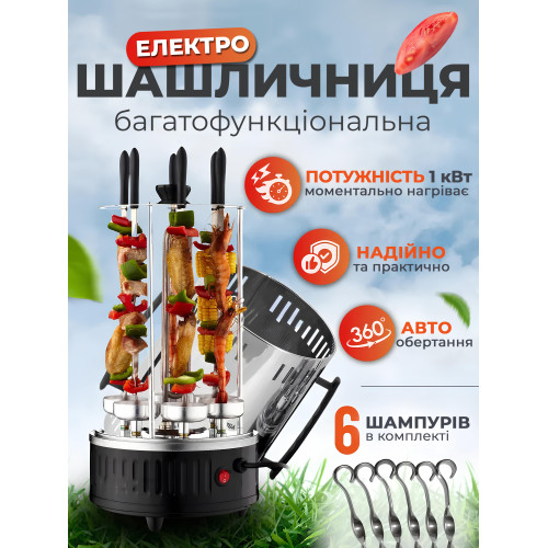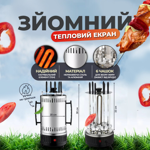 Электрошашлычница вертикальная электрогриль для шашлыков на 6 шампуров BBQ шашлычница электрическая