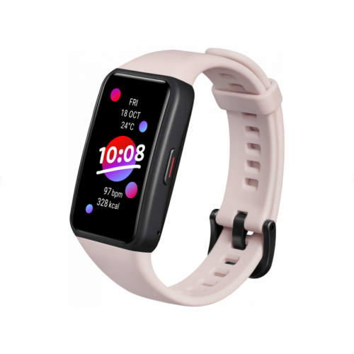 Honor Band 6 — универсальный и функциональный фитнес-браслет, который позволит комфортно следить за своей физической активностью как на протяжении дня, так и во время тренировок, а вместе с тем не пропустить ни одно важное событие. Устройство изготовлено в прочном пластиковом корпусе способном выдержать давление в 5 АТМ. Для вывода информации в Honor Band 6 используется 1,47-дюймовый AMOLED дисплей с разрешением 368х194 точки. Браслет имеет встроенный пульсометр и пульсоксиметр, а также может вести подсчет шагов, ступенек и мониторинг состояния сна. Для отслеживания интенсивности нагрузки во время тренировок предусмотрено 10 профессиональных спортивных режимов. Honor Band 6 может оповещать о любых входящих событиях, таких как звонки, сообщения, активности приложений, календаря и многое другое, а также позволяет управлять музыкой. Встроенного аккумулятора на 180 мАч достаточно для 14 дней работы без подзарядки.