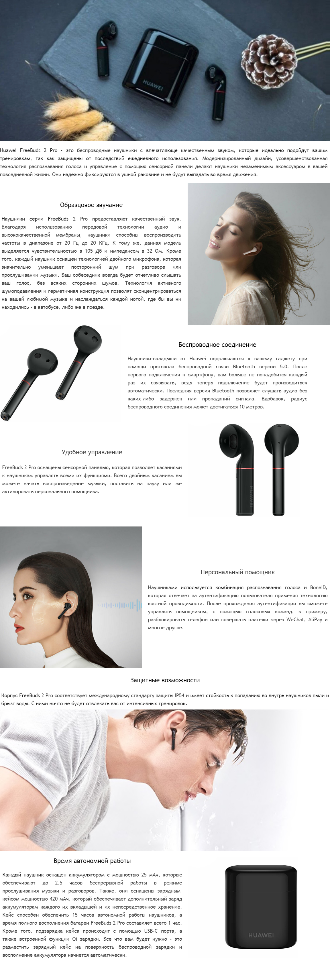 Встроенного аккумулятора хватит на 10 часов беспрерывного прослушивания, а с помощью комплектного чехла-зарядки, время работы HUAWEI FreeBuds White можно продлить вдвое. |