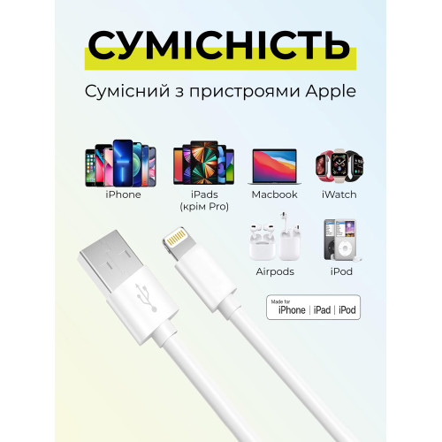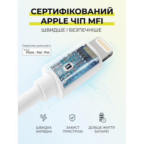 - Кабель USB - Lightning предназначен для быстрой зарядки аккумулятора Вашего iPhone, iPad или iPod и передачи данных на высокой скорости.