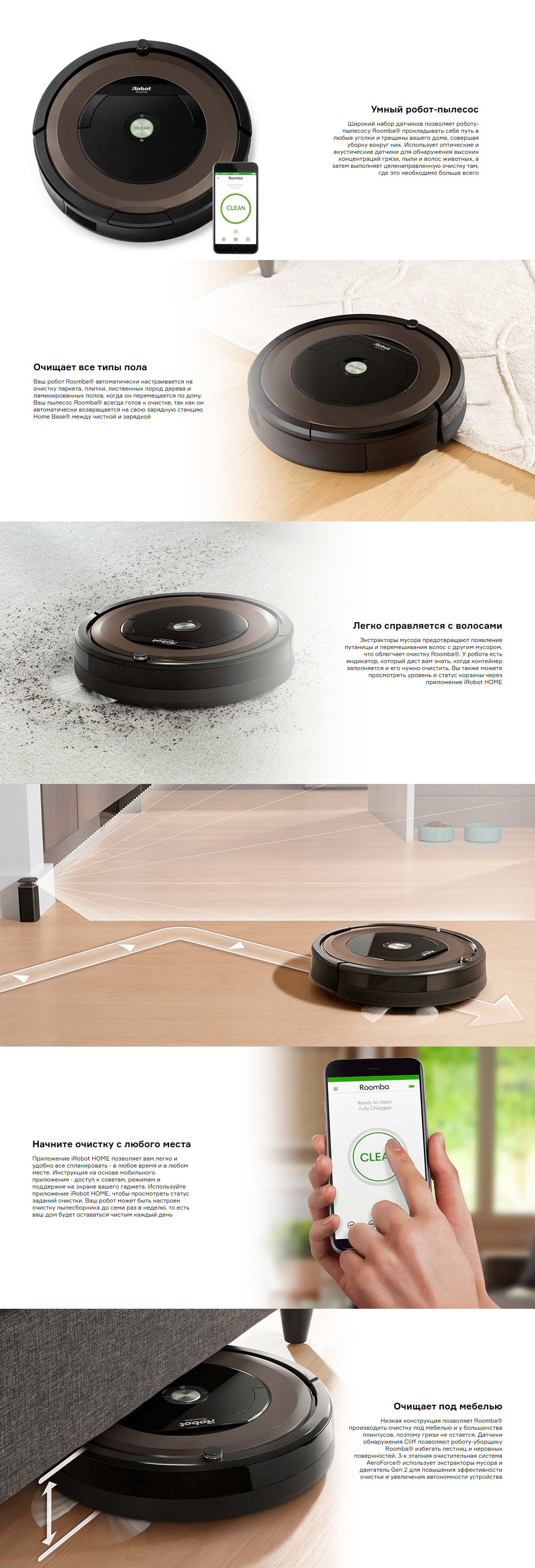 Для полного контроля над роботом-пылесосом, вне зависимости от вашего местонахождения, достаточно скачать и установить на смартфон или планшет фирменное приложение iRobot HOME (Android/iOS) |