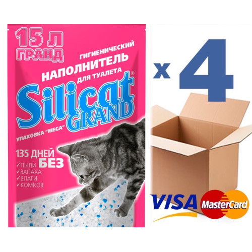 Наполнитель туалетов для кошек 15.0L x 4 шт. Silicat grand