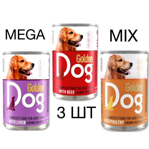 Влажный корм для собак 415г Mega Mix Golden Dog упаковка 3 ШТ