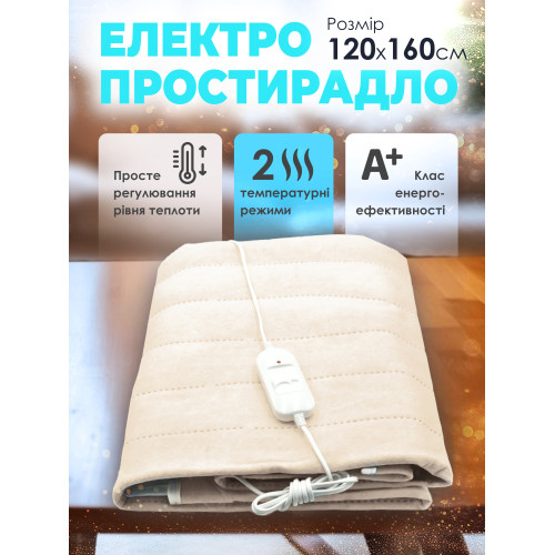 Размер простыни 120*160 см.Длина провода 200 см. и переключатель режимов, находящийся под рукой, обеспечат максимум комфорта Вашему отдыху.Простынь имеет два температурных режима и полное отключение.1 - режим сна - электро простынь потребляет всего 40 Вт;2 – режим прогрева - электро простынь потребляет 88 Вт.