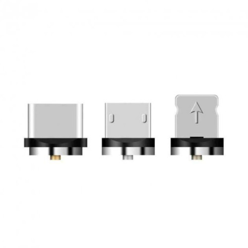 Магнитный кабель с круглым разъемом и переходниками micro USB, Type C, lightning.