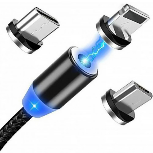 Кабель Магнитный Для Зарядки Телефона 3в1 Bitzen Magnetic MicroUSB+Type-C+Lightning 1м Черный 87687-2376