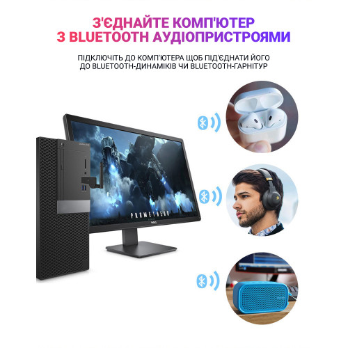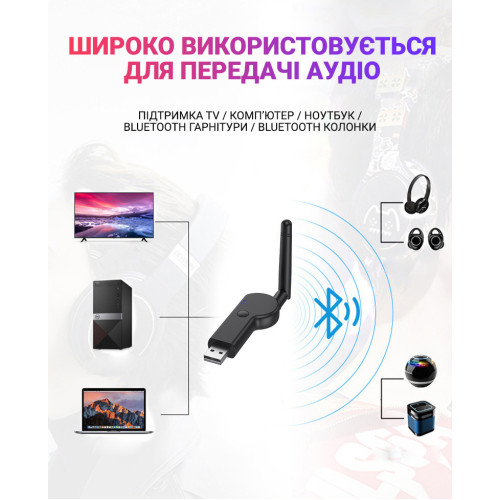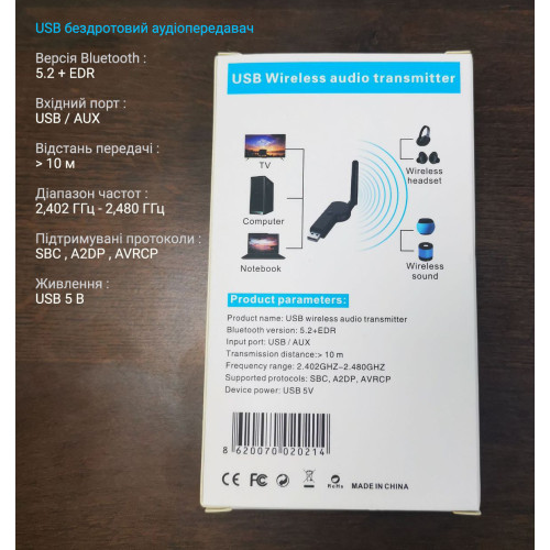 Устройство очень компактное и простое в подключении. Необходимо только подключить передатчик к USB порту компьютера, чтобы подключить его к Bluetooth-динамикам или Bluetooth-гарнитурам. Поддержка ТВ, Компьютер, Ноутбук.
