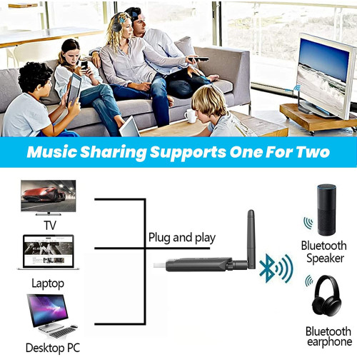 Беспроводной USB Bluetooth аудиопередатчик поддерживает функцию, с помощью которой можно одновременно подключить два наушника по Bluetooth, чтобы делиться с семьей и друзьями.