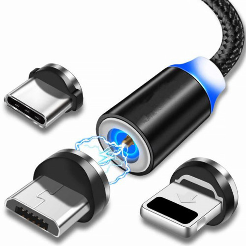 Магнитный кабель с круглым разъемом и переходниками micro USB, Type C, lightning.