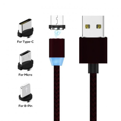 Кабель Магнитный Для Зарядки Телефона Смартфона 3в1 Magnetic MicroUSB+Type-C+Lightning 100см Черный 87687-2376