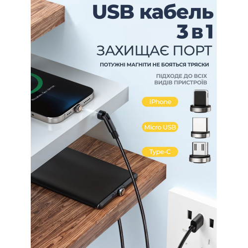 Магнитный кабель для быстрой зарядки Data кабель для передачи данных USB-кабель 3в1 Lightning Micro USB Type C USB C 3A Быстрая зарядка Вращение на 540° 1М Pavlysh XC-17