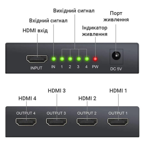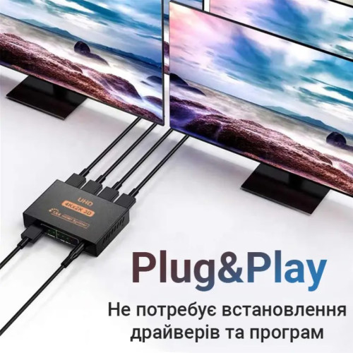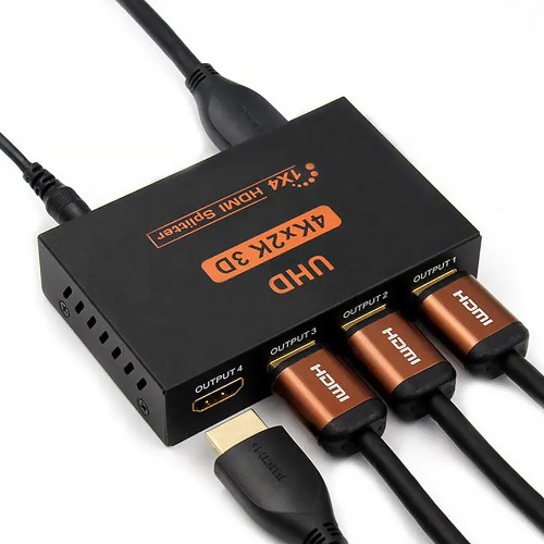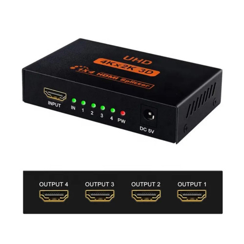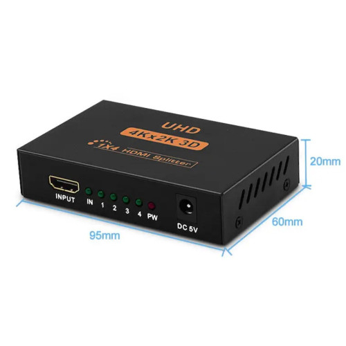 Сплиттер разветвитель 4-х портовый HDMI V1.4 1x4 HDTV UHD 4Kx2K 3D Pavlysh HU-4 который позволяет использовать его с одним хост-устройством (например: Blu-Ray плеером, игровой приставкой, ПК, ноутбуком и т.д.) и отправлять сигнал на четыре дисплея (телевизор, монитор, проектор и т.д.). Устройство работает без потери качества, имеет компактный размер и выполнен из металла. Когда два или более разветвителя соединены каскадом, их можно использовать для создания большего распределения.