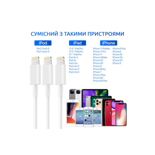 В семье которая любит яблоки шнурок для iPad, iPhone, iPod всегда пригодится, да не один, а чем больше тем лучше. Наш пак 4 в 1 для любителей техники Apple будет как нельзя кстати. Теперь один кабель Apple спокойно оставить в машине, один взять на работу, а остальные оставить для домашних нужд. Ведь кроме всего прочего кабель зарядки Lightning для AirPods тоже пригодится.