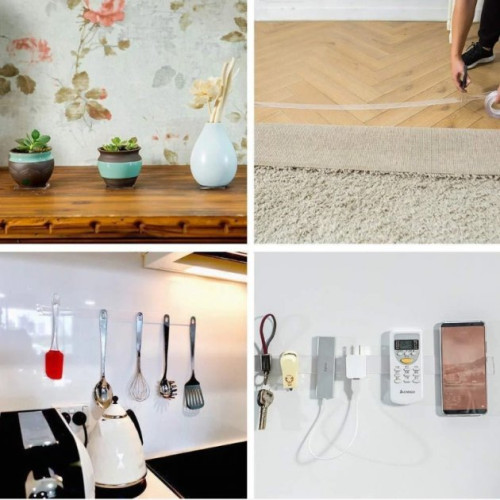 Данную ленту вполне можно использовать вместо небольшой полочки для вещей дома, в гараже или на даче. Лента выдержит большинство небольших предметов, в том числе мобильные телефоны, салфетницы, картины, календарики, ручки, карандаши и многие другие предметы. Также хорошо хранить такую ленту в машине на всякий случай.