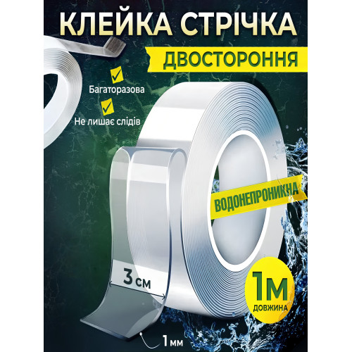 Клейкая лента многоразовая двусторонняя клейкая лента нано-лента двусторонняя прозрачная двухсторонний скотч 1 м Pavlysh GL-30