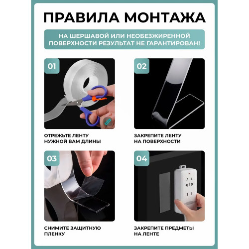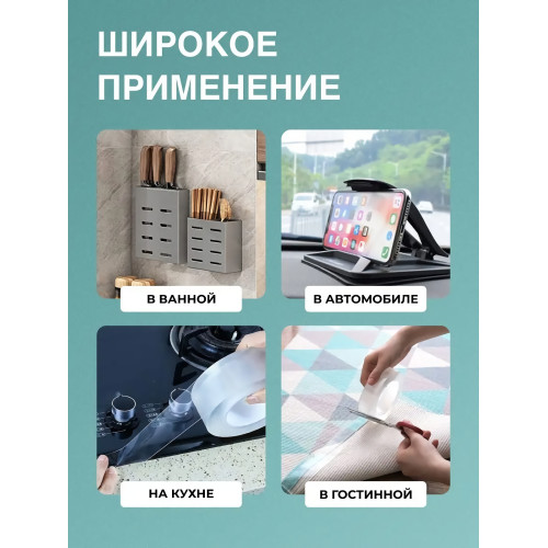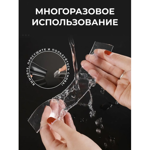- Качество материала: Многоразовая лента изготовлена из специального нового гелиевого материала, благодаря чему она надежно крепиться на абсолютно любые поверхности и снимается с них не оставляя следов.