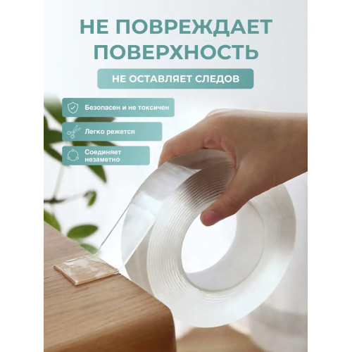 Очень часто для закрепления тех или иных предметов мы используем двухсторонний скотч. Данный скотч является многоразовым. Технология изготовления позволяет приклеивать и отклеивать ленту множество раз надежно и качественно, не оставляя никаких следов на поверхности! После использования клейкой ленты ее нужно промыть водой и она снова обретет клейкие свойства.