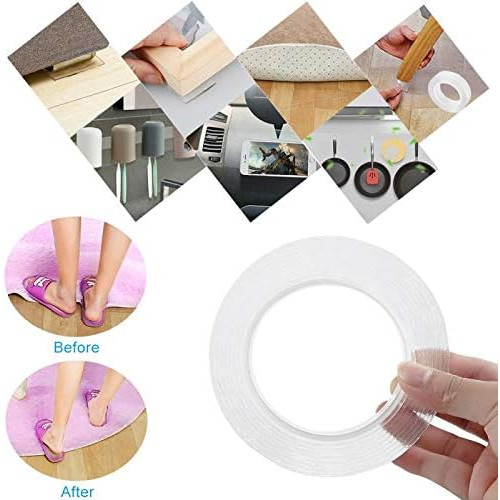 Очень часто для закрепления тех или иных предметов мы используем двухсторонний скотч. Данный скотч является многоразовым! Технология изготовления позволяет приклеивать и отклеивать ленту множество раз надежно и качественно, не оставляя никаких следов на поверхности! После использования клейкой ленты ее нужно промыть водой и она снова обретет клейкие свойства.