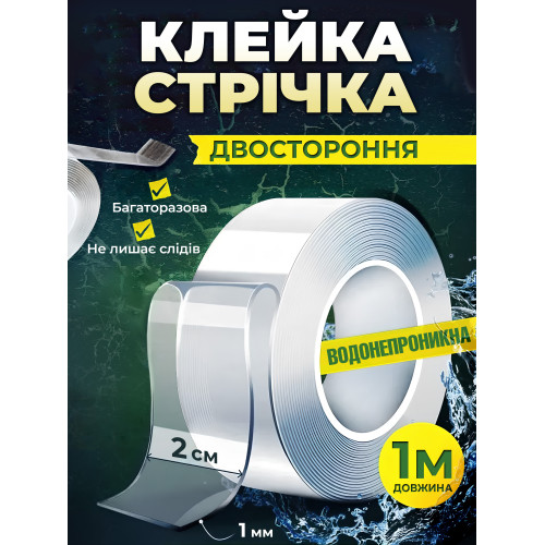Клейкая лента многоразовая двусторонняя клейкая лента нано-лента двусторонняя прозрачная двухсторонний скотч 1 м Pavlysh GL-20
