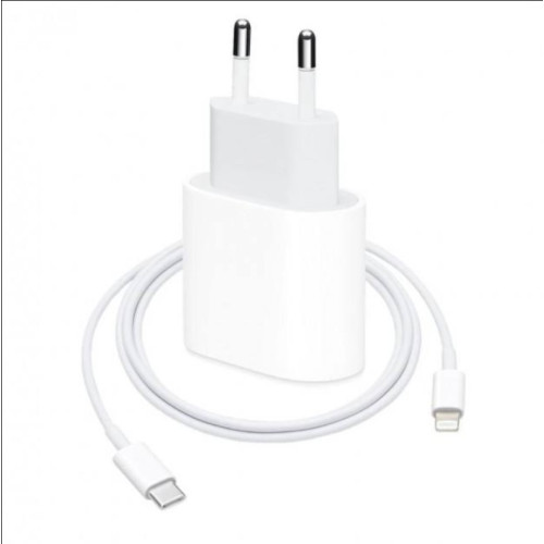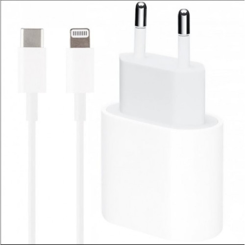 В комплект быстрой зарядки входит зарядный кабель USB-C to Lightning и адаптер Power Adapter USB-C 20W, который работает от сети 220В.