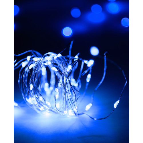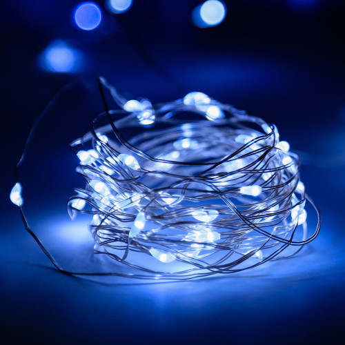Гирлянда светодиодная нить роса 5м LED 50 на батарейках и USB синий цвет Blue