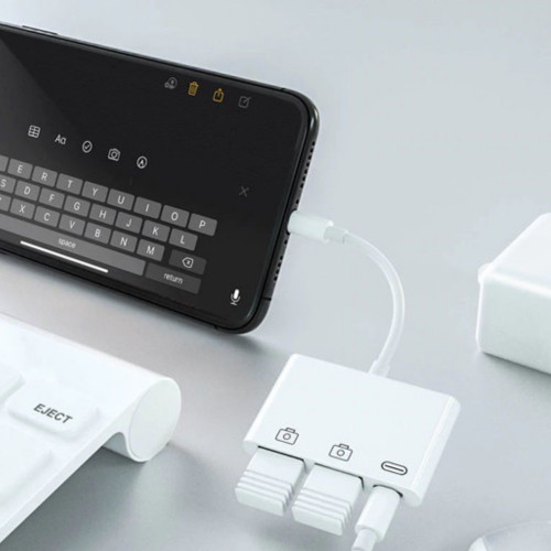 С адаптером переходником Lightning на USB вы можете подключать внешние периферийные устройства к своему iPhone или iPad с интерфейсом Lightning. Дополнительный порт зарядки на переходнике служит для стабильной работы с внешними устройствами и зарядки гаджета во время работы. Компактный переходник 3 в 1 с двумя USB Female (мама) портами способен решить множество задач: