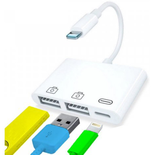 Переходник для iPhone на 2 USB адаптер для iPad на флешку кабель для подключения камеры с разъемом зарядки PAVLYSH PA-16