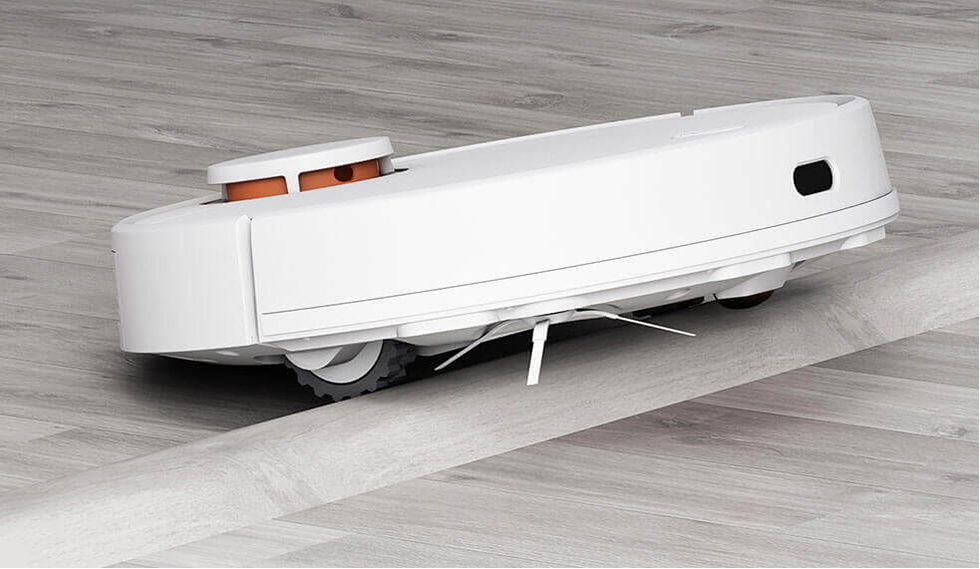 На оборотной стороне прибора предусмотрены 2 щетки – боковая и центральная. С помощью боковой робот-пылесос выгребает сор из пространства вдоль стен и углов, а основной он пододвигает собранную грязь к всасывающему отверстию. Мощнейший мотор бесщеточного типа всасывает все до единой соринки/пылинки, делая идеально чистыми не только гладкие, но ворсистые напольные покрытия. Отличительно чертой от других роботов серии Mi Robot можно назвать его высокие колеса и чуть увеличен клиренс, что дает возможность преодолевать преграды чуть больше 2 см. Обратите внимание: Робот в режиме сухая + влажная уборка может заехать на ковер. Чтобы этого избежать ограничьте его в приложении.