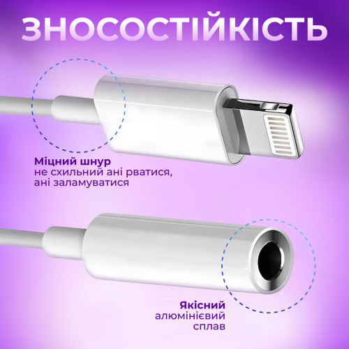 Адаптер Lightning на 3.5мм AUX используется для подключения к iPhone, которые не оснащены аудио-разъемом стандартных наушников с 3.5mm. Стоит отметить, что он подойдет и для других устройств, имеющих порт Lightning. С передачей аудио-контента он отлично справляется: подключение происходит моментально, а качество звука не искажается.