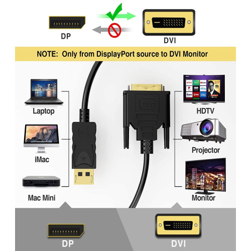 Кабель Displayport на DVI видео интерфейс предназначен для вывода фильмов, игр, слайдов, изображений и других видов медиаконтента на большой экран, например