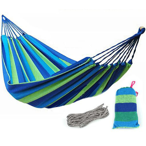 Подвесной тканевый гамак туристический 200х80 лежак тканевый с чехлом и креплениями для дома дачи сада Синий с зеленым