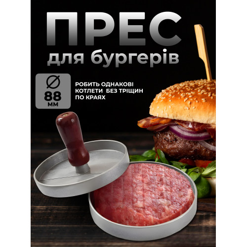 Пресс для бургеров – это незаменимый аксессуар, который должен быть в арсенале каждой хозяйки. С этим устройством Вы сможете приготовить котлету, как настоящий шеф-повар. Конструкция пресса для бургеров позволяет приготовить идеальные котлеты с начинкой, из которых не вытечет сок. Вы сможете положить в фарш все свои любимые ингредиенты. Не боясь, что к концу приготовления они все окажутся снаружи.