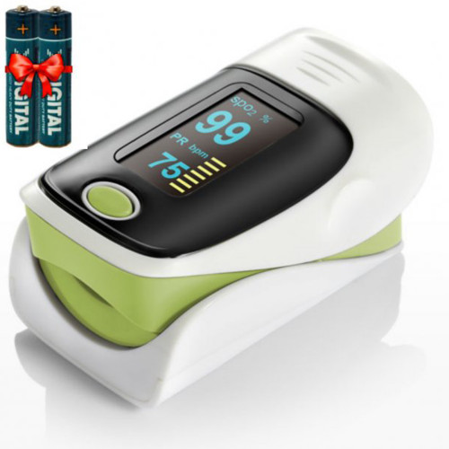 Пульсоксиметр на палец измерения кислорода в крови OLV-80A-302A - Зеленый оксиметр Pulse Oximeter пульсометр електронный