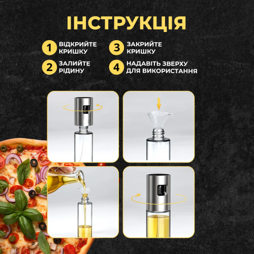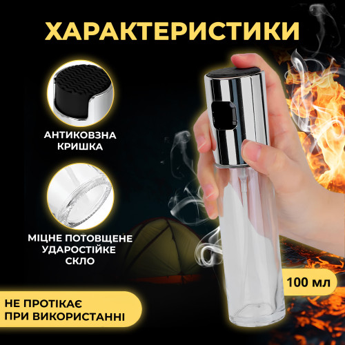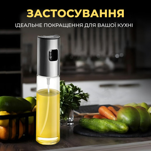 Поскольку плотность масла отличается от плотности воды, масло может распылятся не так легко, как вода. Мы предлагаем вам держать распылитель немного выше, когда вы используете оливковое масло, держите бутылку вертикально, насколько это возможно, чтобы получить лучший эффект от распыления. Спрей для масла можно использовать на кухне или переносить на улицу в зону готовки барбекю. Форсунка для распыления оливкового масла создает однородный чистый "масляный туман".