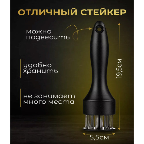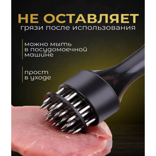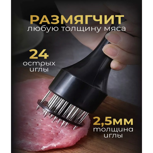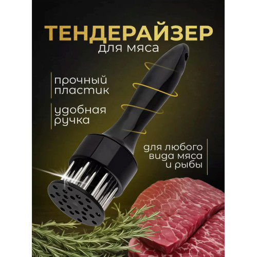 Современный инструмент для обработки и натурального размягчения мяса или рыбы. Тендерайзер с технологией игольчатых лезвий и защитной насадкой для лезвий, позволяет обрабатывать мясо и рыбу без шума и брызг, сокращает время маринования на 70% и время жарки, приготовления в духовке или гриле на 50%. В отличие от отбивания мяса молотком, при использовании этого приспособления, мясо остается такой же толщины и таким же сочным. Отличный результат - сочное и нежное мясо.