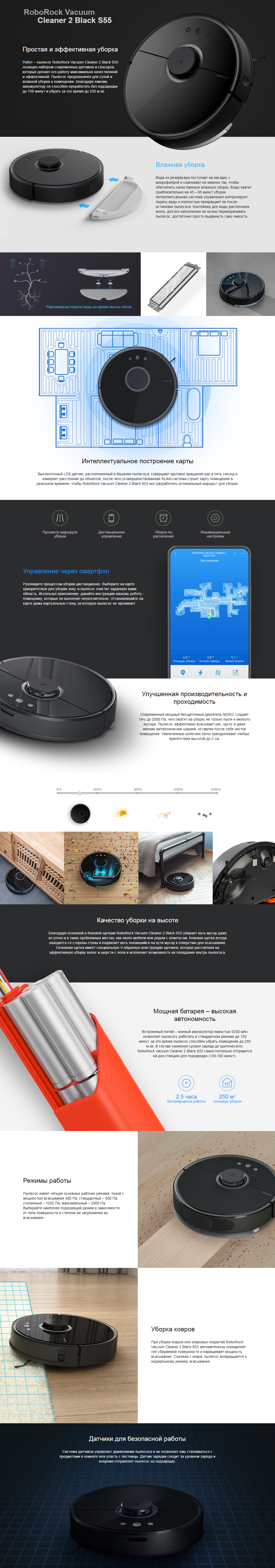 Украинский голосовой пакет (опция). Важным отличием умного пылесоса RoboRock от первой модели является наличие функиции влажной уборки. В нижней части умного пылесоса размещается емкость для воды, которая в свою очередь, в процессе уборки, увлажняет специальную микрофибру (основой нити микроволокна являются полиамид и полиэфир) предназначенную для эффективной протирки пола. Резервуара наполненного водой будет достаточно для 45-60 минутной влажной уборки в комнате. Номинальная мощность 55W. Фильтрация - HEPA-фильтр и фильтр первичной очистки. Создание карты и выбор оптимального маршрута уборки, магнитный ограничитель движения. Дистанционное определение препятствий с помощью сканирующего лазерного дальномера. Уборка по расписанию. |