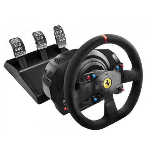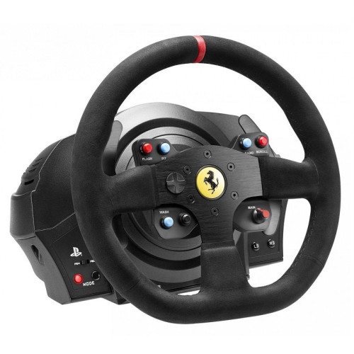 Thrustmaster T300 Ferrari Integral RW Alcantara edition – особая версия игрового руля, созданного для автомобильных симуляторов и гонок. Он предназначен для работы с компьютерами, а также игровыми консолями PS4 и PS3. Важная особенность Thrustmaster T300 Ferrari Integral RW Alcantara edition – обшитый алькантарой руль, что создает массу положительных эмоций от использования, а также комфортна при хвате. Помимо этого, он является официальной репликой руля 599XX EVO, выполненной в масштабе 8:10 по лицензии от Ferrari. В базе применен бесщеточный сервомотор с мягкой обратной связью, а угол выворота регулируется в диапазоне от 270 до 1080 градусов. В комплект Thrustmaster T300 Ferrari Integral RW Alcantara edition также входит металлический педальный блок с 3 полностью регулируемыми педалями