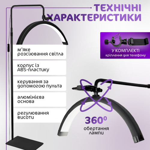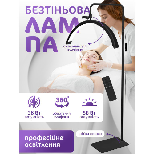 Напольная LED лампа для маникюра тату косметолога с креплением для телефона с пультом управления Лампа-полумесяц для наращивания ресниц Pavlysh M6X Black