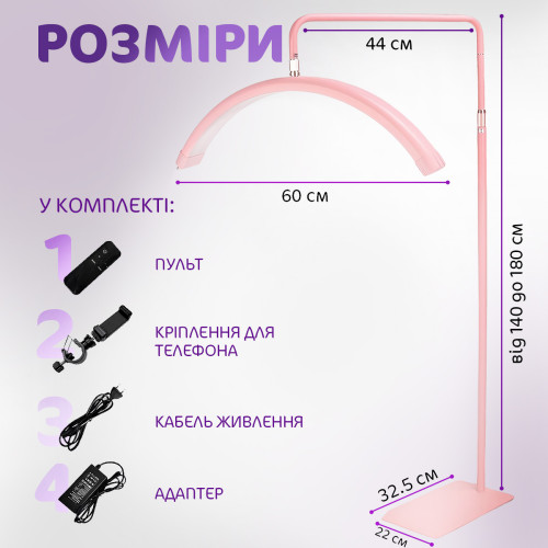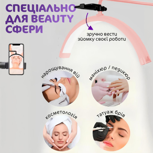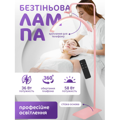 Лампа для наращивания ресниц Напольная LED лампа для маникюра косметолога тату с креплением для телефона Moon lamp Pavlysh M8X Pink