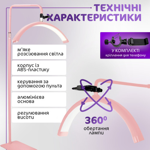 ФУНКИЦОНАЛЬНОСТЬ: плафон лэд лампы можно поворачивать на 360°, а его широкая серповидная форма устраняет тени и мертвые зоны. Яркий свет – незаменимый помощник в тонких и профессиональных работах, таких как : создание контента для товара, перманентный макияж, татуаж и наращивание ресниц.