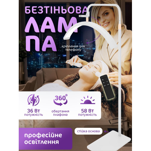 Лампа для наращивания ресниц Напольная LED лампа для маникюра косметолога тату с креплением для телефона Moon lamp Pavlysh M8X White