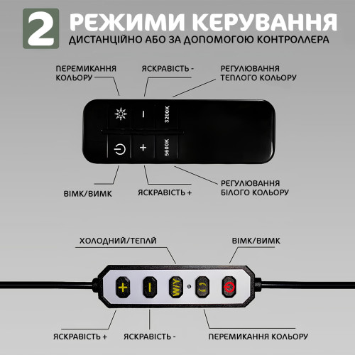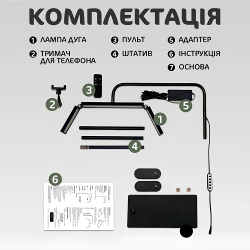 | Дополнительные характеристики | Три типа освещения: Холодный / Теплый / Нейтральный Высота штатива: 92 см Материал: Алюминий |