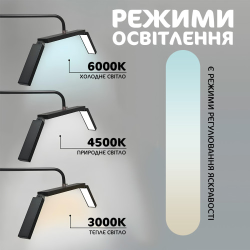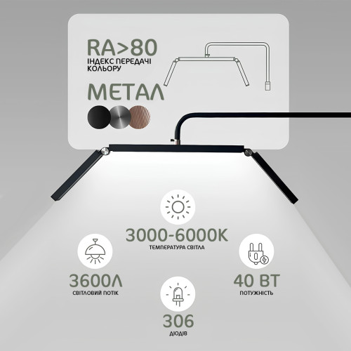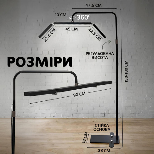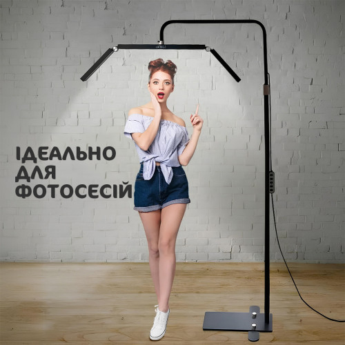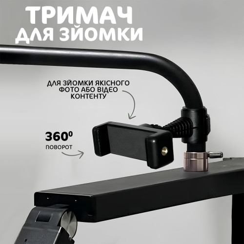 Лампа для наращивания ресниц Напольная LED лампа для маникюра косметолога тату с креплением для телефона Лампа-трансформер для бьюти Pavlysh M9X Black