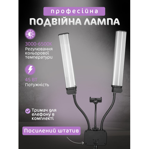 Лампа для наращивания ресниц Двойная LED лампа для маникюра тату косметолога с креплением для телефона для бьюти сферы Pavlysh 5X