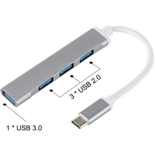 USB Хаб с Type-C (USB-C) на x1 USB 3.0 to x3 USB 2.0 HUB на 4 порта юсб, металлический корпус (Type C-HUB) Silver