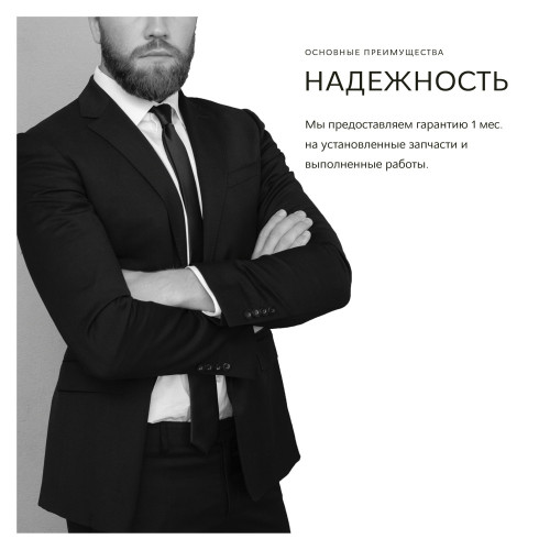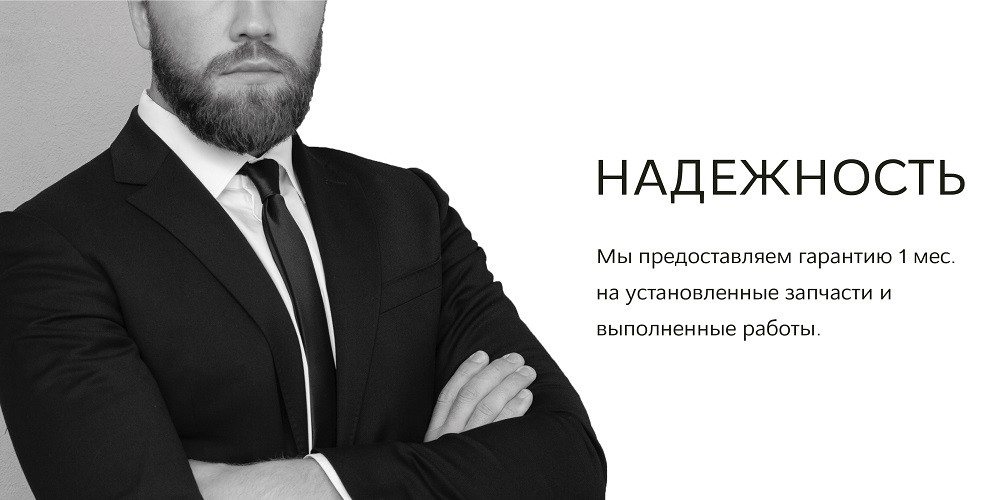 Надежность. Мы уверены в опытности и квалификации наших мастеров и даем гарантию на установленные запчасти и проведенные работы сроком один месяц.